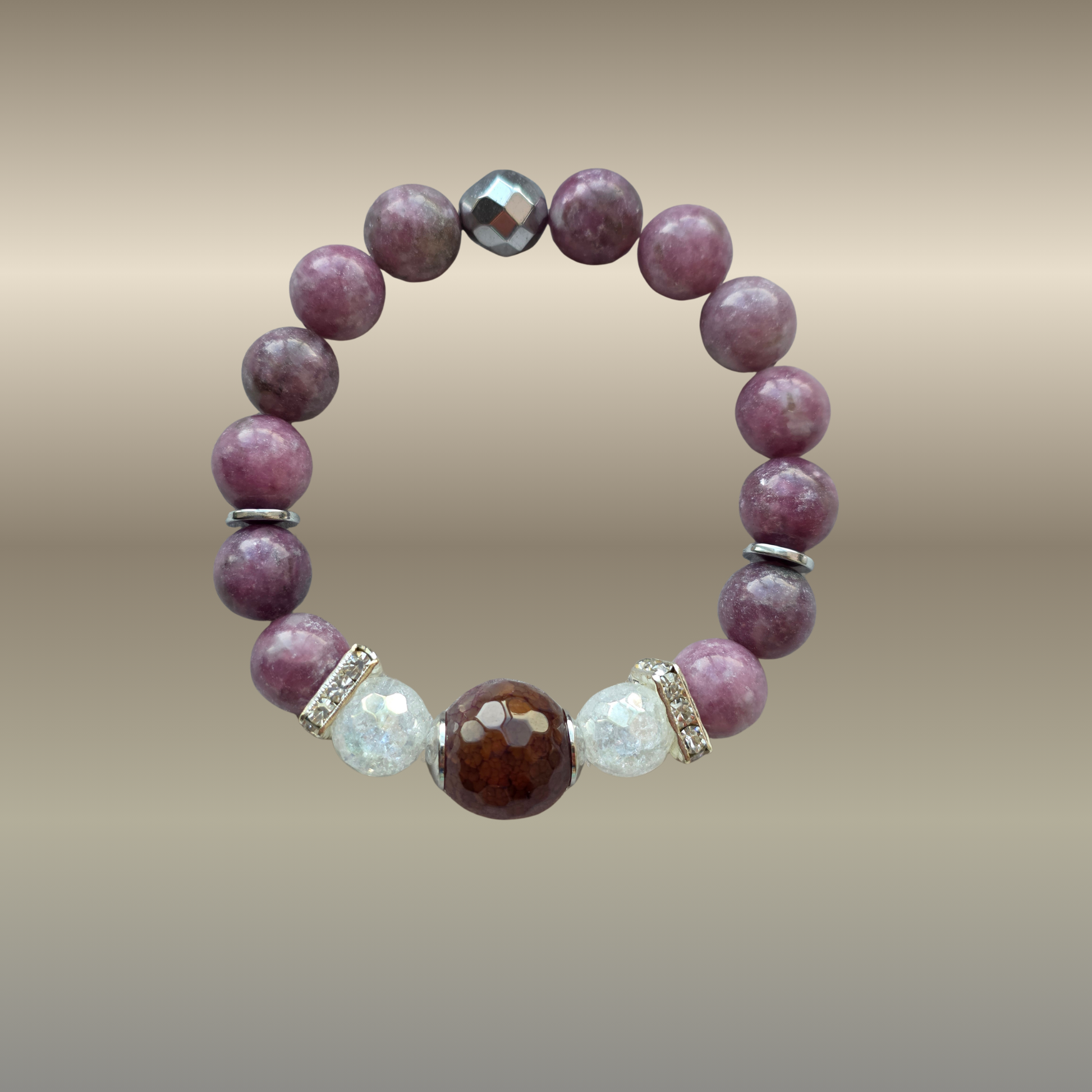 Tinka visiems, kurie jaučia emocinį perteklių, stresą ar vidinį nestabilumą. Tinka17-18 cm riešui. Akmenys 12-10 mm.